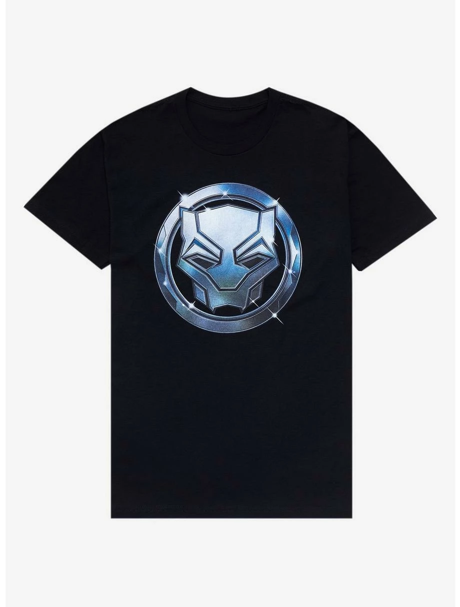 Rep the Wakandan hero wherever you go with this Black Panther tee! With a chrome panther logo appearing on the front, this tee is the perfect style for adding a heroic punch to your Marvel style.